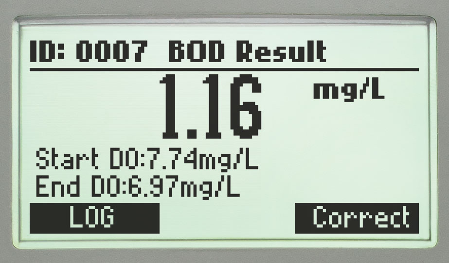 A list of all saved BOD data can be easily retrieved and shown on the LCD display.